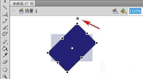 flash旋转对象会使该对象围绕其变形点旋转。变形点与注册点对齐,默认位于对象的中心,但也可以通过拖动来移动该点。通过下面的方法来看一下怎样旋转和倾斜对象。