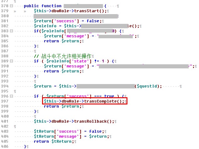 在我们的业务代码中,由于程序员疏忽,没有判断trans_complete()方法是否正确执行,直接告诉用户操作成功,但实际上,程序已经向DB下达回滚指令,并未成功更新DB记录。当用户执行下一步操作时,程序又发现相应记录并未更新,又提醒用户上个操作没有完成,通知用户重新执行。如此反复…