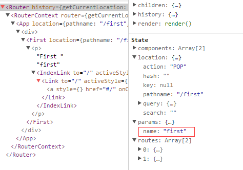 需要注意的是,这里的App在父级,为了获取子级的First与Second组件,需要在App组件中添加 this.props.children 获取
