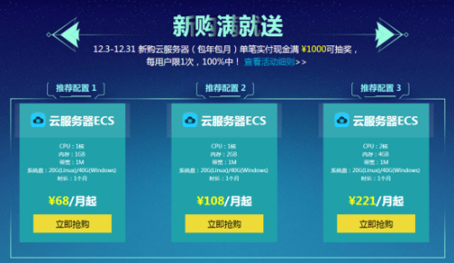 在各种价格优惠之外,阿里云嘉年华还推出了更新颖的玩法,包括针对新数据库的有奖竞猜,针对一折秒杀的转发集点击等,多种玩法更让嘉年华平添乐趣。在此次阿里云嘉年华活动中,阿里云老用户将独享“续费满就送”优惠,只要满足云服务器ECS的续费条件,就能参与代金券抽奖,价值100元、500元、1000元的代金券均虚席以待。