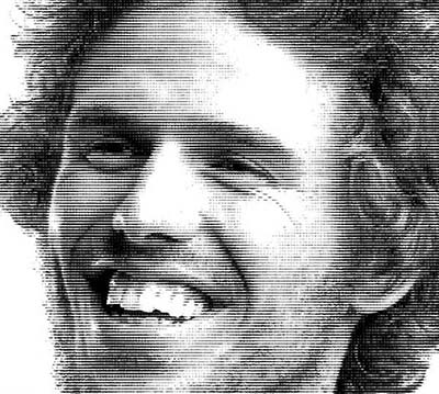 效果图非常有个性,主要用图像模式来完成,前期快速把人物素材转为黑白效果,并增加明暗对比;然后把模式转为灰度,再把模式转为位图,在对话框中就可以设置参数,把人物转为半调网纹效果。最终效果如下图。