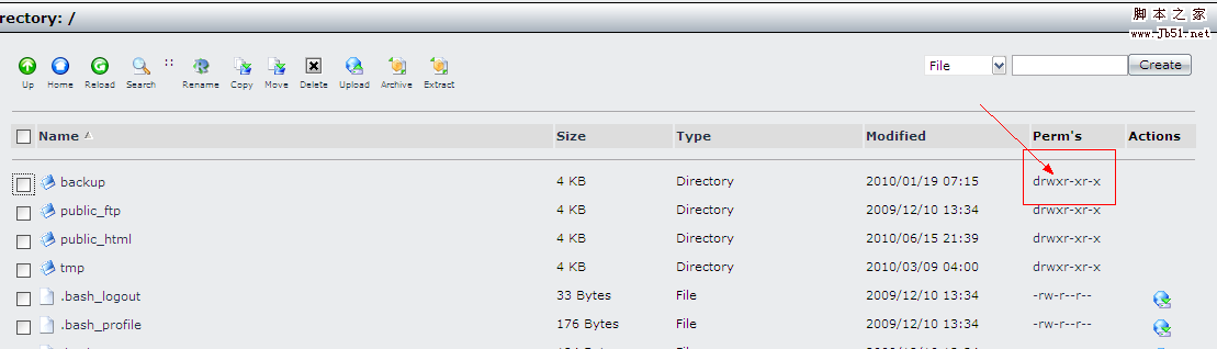 3、单击你要修改的目录或文件的Perm’s那一列改变权限
