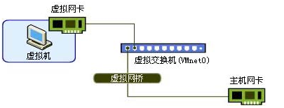桥接模式,使用的是vmnet0这个虚拟网卡。它使虚拟机与主机占有同样的网络地位,在同一个网段。也就是说,主机能连的网他都能连上,与他一样,呵呵。