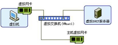 vmnet1:他构建一个封闭的网络环境,不与主机以外的网络环境建立连接,也是一个虚拟交换机,一个端口连接到主机上,另一个端口连接到虚拟机的DHCP服务器上,其余的端口连载虚拟机上。
