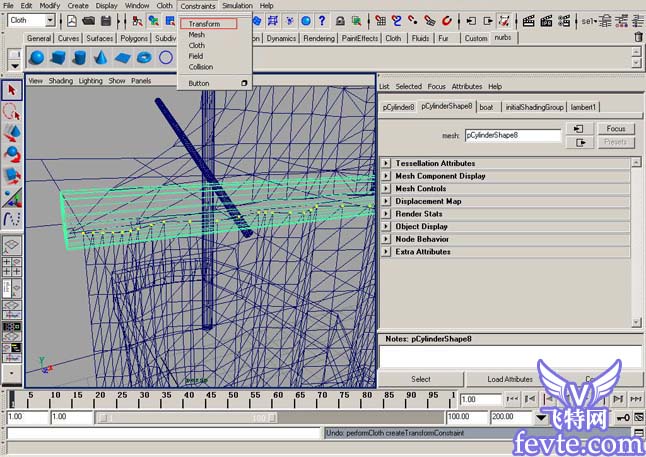 第七步:对布料进行约束。