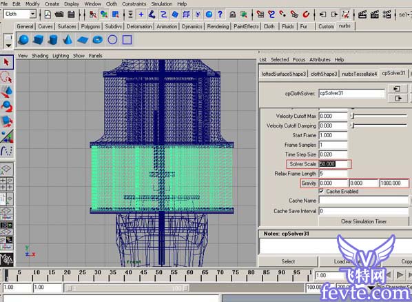 第九步:设置解算器的值,solver scale是控制布料的柔软程度的,数值越大,越柔软。