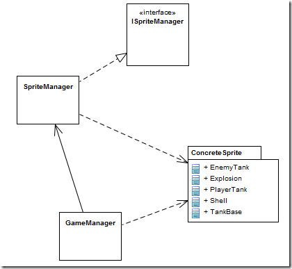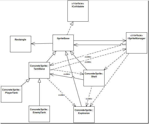 可以看出各精灵类型之间的关系是比较乱的,双向依赖随处可见。(其实图中因为把 SpriteManager 画到了另外一张图,所以没有显示出更复杂、更乱的关系。)