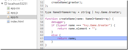 优点: Lambda 非常好地解决了 this 指针的问题。 Chrome、IE 都能直接调试 TypeScript! 过程中还发现了弱类型无法发现的错误。因为重命名,还没有修改原来的代码。(SpriteManager.js 98 行)