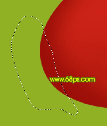 4、在“果实主体”图层上面新建一个图层(新建的图层已经于下层编组,后面的操作就方便很多),用钢笔勾出图5所示的选区,按Ctrl + Alt + D 羽化20个像素后填充颜色:#9B0F07,效果如图6。
