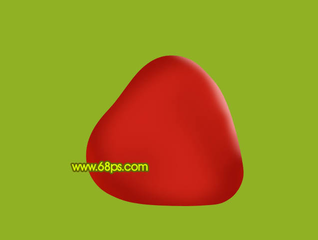 2、新建一个图层,命名为“果实主体”,用钢笔工具勾出草莓的轮廓,转为选区后填充颜色:#CC2316,效果如下图。