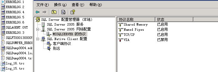 Sql Server Configuration Manager-------Sql Server 2005网络配置------MSSQLSERVER的协议,讲VIA协议禁用即可。