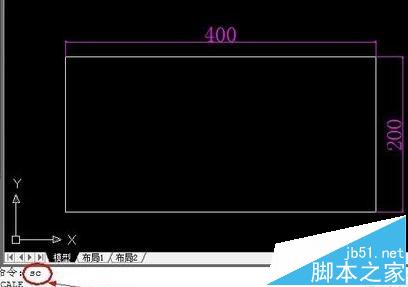 2、画出将要修改比例的图形。这里以长400mm,宽200mm的矩形为例