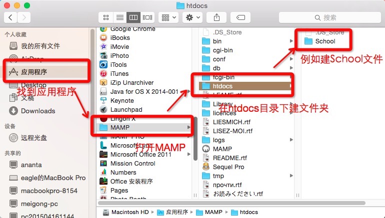 5.在应用程序中找到MAMP找到htdocs文件并在此目录下新建一个文件: