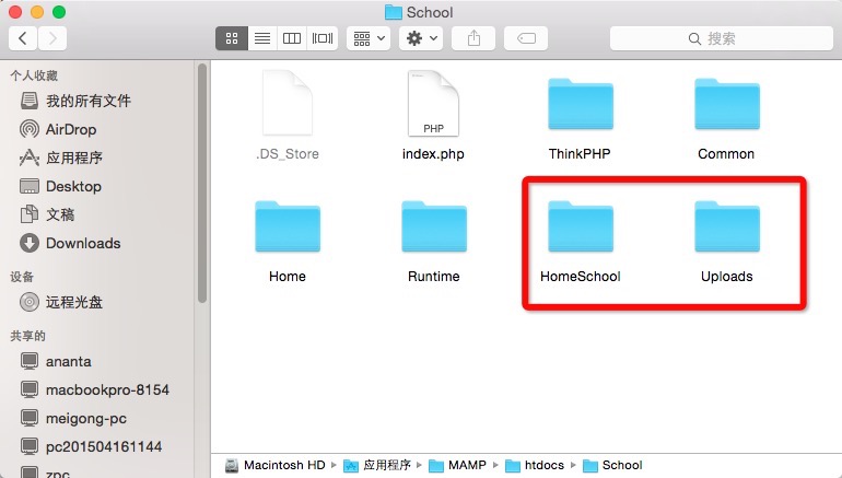7.把下载好的ThinkPHP框架解压后,把ThinkPHP框架直接导入上述步骤建立的School文件夹中,并新建一个index.php文件