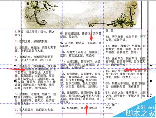 8、将内容复制,点击文字工具,点击需要排入文字的位置,选择ctrl+v黏贴,并选择“文本”-->栏-->栏数:3-->宽度:60mm,-->栏间宽度:5mm.并设置字体大小为11,让文本内容合适。