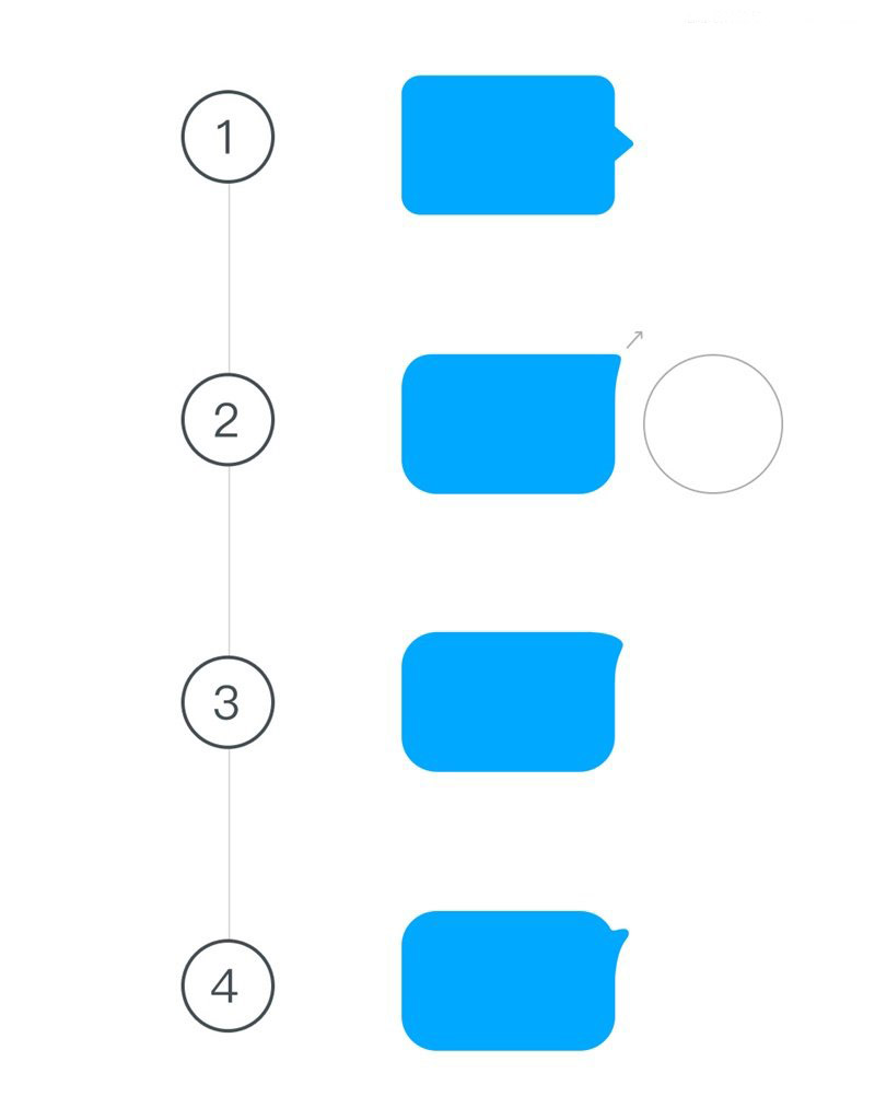 最终从图3-4,我们调整气泡角的位置,保护了圆角的对称性,同时让气泡角下弧线更加平滑与头像关联,从而降低了原气泡角过于激烈的视觉样式。