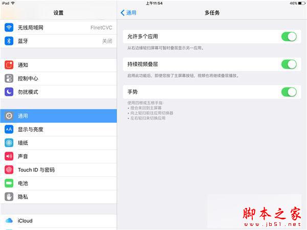 但如果你只是想保护你的HOME键,在iPad上完全不需要使用这个功能,使用“手势”操足矣,打开 设置—多任务—手势 后,当我们在屏幕上使用四根或五根手指捏合时就可以在任何画面中返回到主屏幕,便捷性完爆HOME键。使用四根手指同时向上划可以进入多任务选项,再也不必为连按两下HOME键而心疼。使用四根手指左右轻扫屏幕时还可以切换应用。