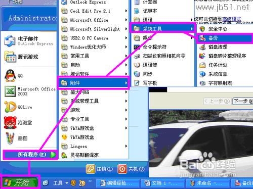 1.首先点击“开始”——“所有程序”——“附件”——“系统工具”——“备份”。
