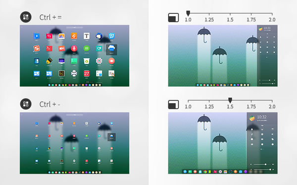 深度桌面环境以及各个组件全面支持适配高分屏。自动识别高分屏上合适的分辨率,界面显示更加清晰和谐,字体和图标等显示也更加明了清楚。