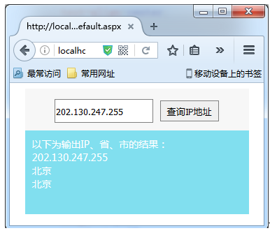 以上这篇通过Web Service实现IP地址查询功能的示例就是小编分享给大家的全部内容了,希望能给大家一个参考,也希望大家多多支持脚本之家。