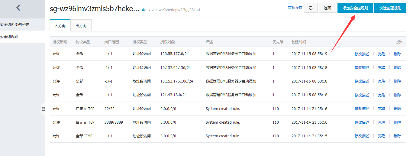 10、因为是阿里云服务器,所以还要去阿里云上面给服务器添加3306的安全组,不然一样远程不过去 ;