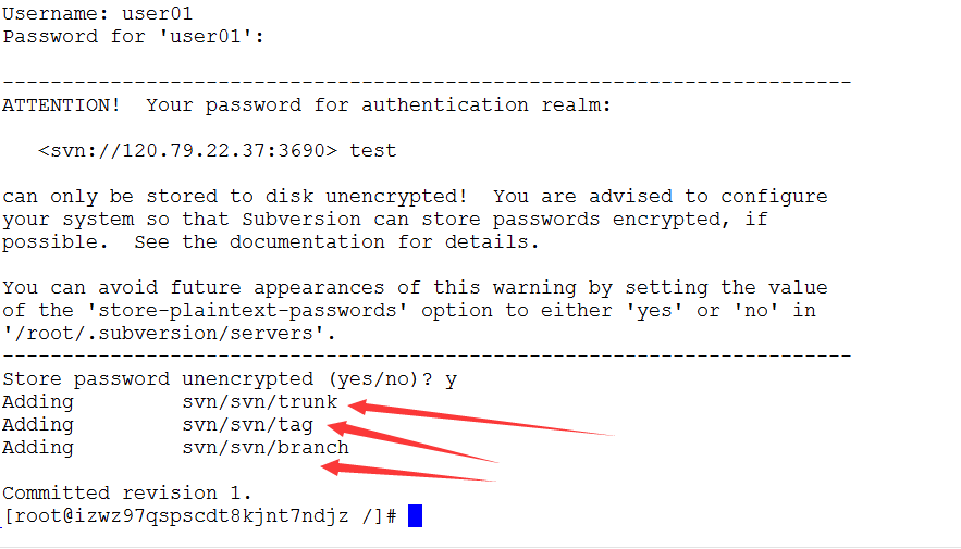 svn import /svn/svn svn://192.168.200.200/test --username=admin --password=123456 -m "import"