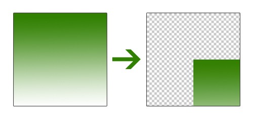 刚才我们说了,设置为透明的意思是将未定义的区域以透明来填充,现在我们可以看到,绿色的图像,已经向右和向下移动了150像素,而其图像原来所在的位置则变成透明了,简单的理解就是,设置为透明,就是图像移动,而移动过后,其原来位置变成透明。