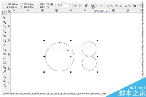 2、垂直复制出一个小圆,并对这两个小圆进行群组CTRL+G。如图