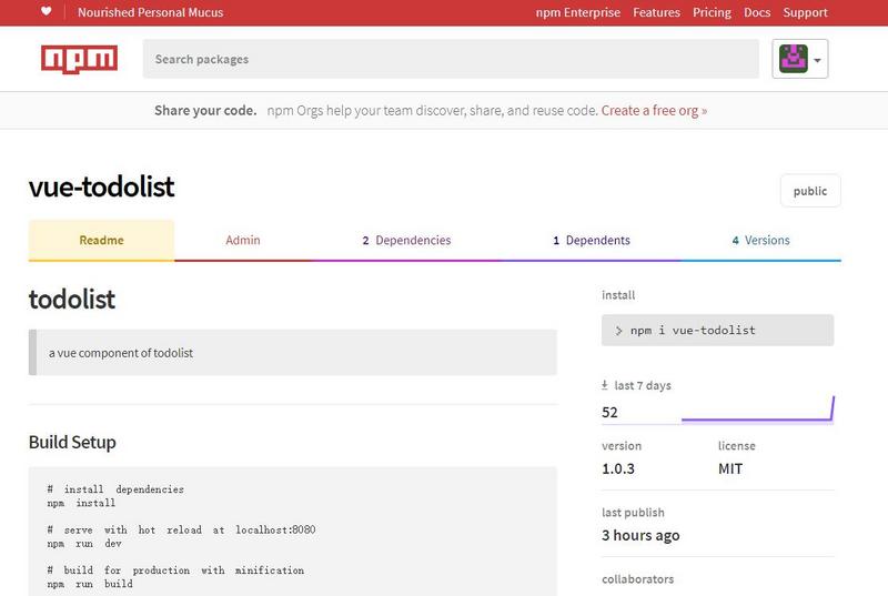 以上就是忐忑猫咪最近收集整理的关于vue todo-list组件发布到npm上的方法的全部内容,更多相关vue内容请搜索靠谱客的其他文章。