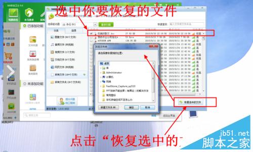 9、选中需要恢复的文件,然后点击窗口右下角的“恢复选中的文件”。