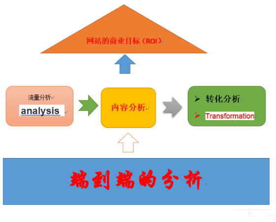 我们如果想要到达这个目标,首先需要我们的网站有用户访问这个事基础,所以不论什么网站,在分析之前一个网站的流量分析是第一步。然后我们要根据我们访客用户的需求进行分析改善我们网站的内容展示给用户。最后一部也是我们最关键 最重要,也是最难得,把我们的访客用户转化为我们的客户,消费者,提交订单。我们做网站分析,每一个问题不是单一存在的,都有着必然的联系,我们要对我们的访客进行进入我们的网站访问和购买下订单整个过程进行端到端的分析。下面小编就逐一对网站分析每一部分分析方法进行简单的阐述。
