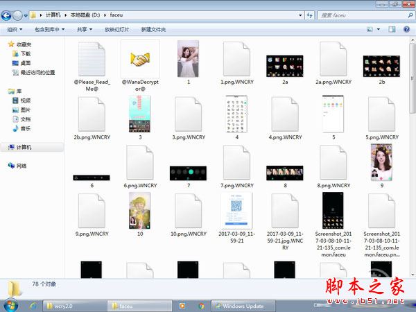 接着小编在测试机上运行WannaCry病毒(请勿模仿,资料数据文件灰飞烟灭可不是闹着玩的),过了一会,测试文件夹的资料文件就给恶意加密了。