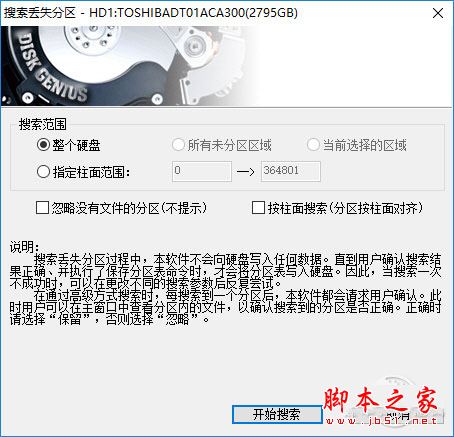 接着笔者熟练的用U盘PE系统引导电脑启动,然后运行DiskGenius,找到菜单栏--工具--搜索已丢失的分区,接着它就会一个一个分区的进行查找,你需要看看找到的分区大小是否相符。确认后进行保存操作。数据无价,没有把握的话还是请教一下身边的高手吧。