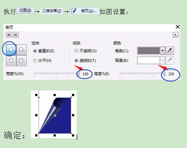 3、单击“位图”菜单→三维效果→卷页,对话框中如图设置: