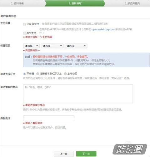 商户基本资料填写一:选择最上面一项,首先填写商户基本资料,申请所需资料以及步骤提示。