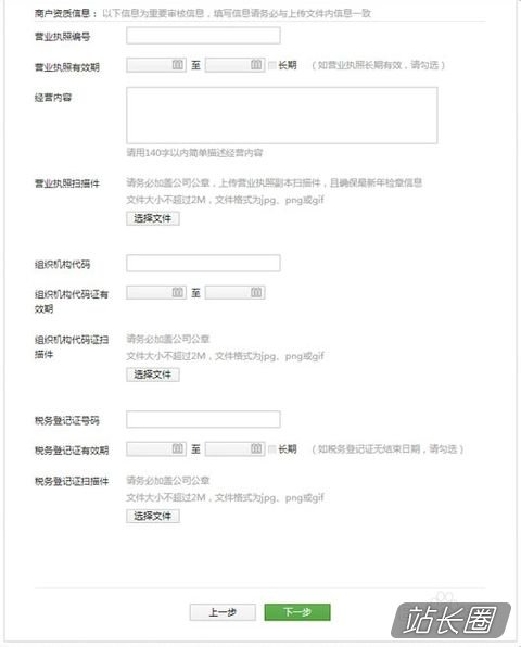 业务审核资料填写三:填写好上面的资料后,进入下一步,在弹出的下级菜单中,填写商户资质信息!