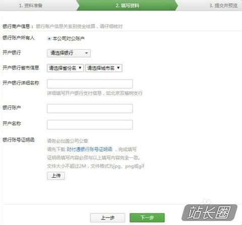 财务审核资料二:根据提示步骤,提前准备好资料,点击》=准备完毕,填写资料。这里需要填写,企业对公帐号和加盖公司公章的证明函。