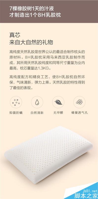 产品方面,8H乳胶枕Z1尺寸为60x40x13cm,采用马来西亚乳胶制作而成,具备柔软的触觉和高回弹性能,很好缓冲人体头颈压力。