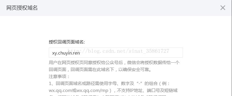 (1)配置网页授权域名,我的域名是(xy.chuyin.ren);