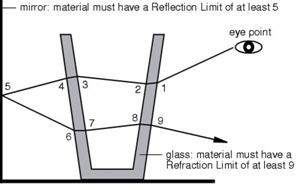 Reflection Limit:光线被反射的最大次数,同上所叙。如果Reflection Limit=10,则表示该表面反射的光线在之前已经过了9道反射。该表面不反射前面已经过了10次或更多次反射的光。它的取值为0~无穷,滑杆的值为0~10,缺省值为。Reflected Color:反射颜色)一般都用于环境贴图,尤其是玻璃、水。
