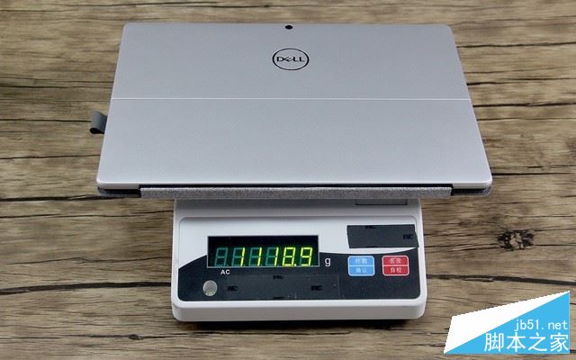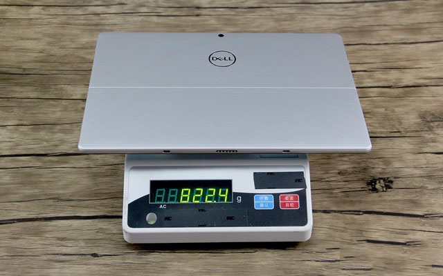 作为12英寸级别的产品,这款机器平板部分的厚度只有8.6毫米。另外通过电子秤称重可以看到,平板部分的重量为822克,带键盘重量为1.12千克,整个机器非常的轻便,携带起来非常方便。