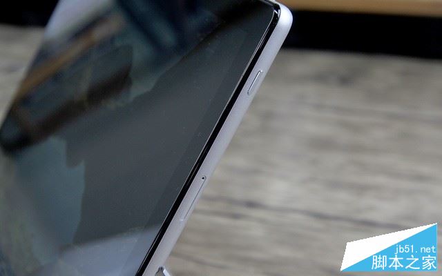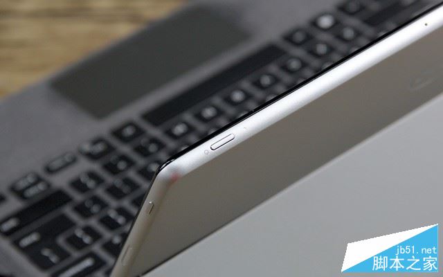 在屏幕顶端右侧位置设计有电源键。同时从边角的设计可以看到其采用了小弧度的圆角设计,触感更加柔和,不像Surface那样棱角鲜明的“扎手感”。