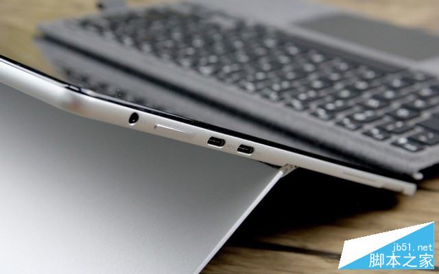 平板部分的左侧边框上设计有3.5mm耳麦插孔、音量调节键以及2个TYPE-C接口。上方的TYPE-C只支持数据传输,下方的TYPE-C同时作为电源接口来使用,同时上下2个TYPE-C口均支持DP功能,可以投出2个外接显示器。