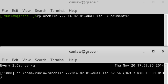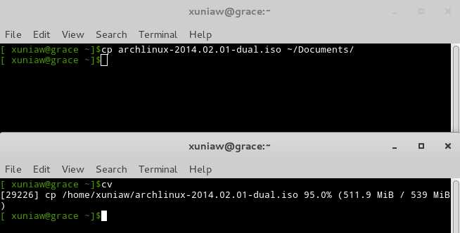 Coreutils Viewer(cv)是一个简单的程序,它可以用于显示任何核心组件命令(如:cp、mv、dd、tar、gzip、gunzip、cat、grep、fgrep、egrep、cut、sort、xz、exiting)的进度。它使用文件描述信息来确定一个命令的进度,比如cp命令。cv之美在于,它能够和其它Linux命令一起使用,比如你所知道的watch以及I/O重定向命令。这样,你就可以在脚本中使用,或者你能想到的所有方式,别让你的想象力束缚住你。