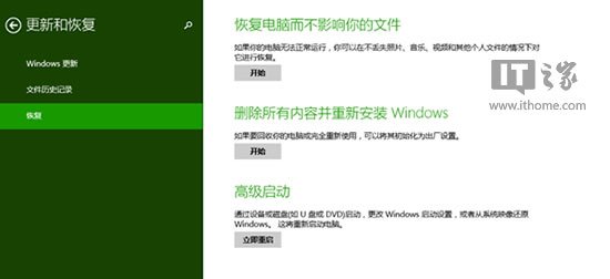 因为Win8/Win8.1引入了三套全新的系统恢复的功能。分别是“恢复电脑而不影响你的文件”(类似我们认为的系统修复)、“恢复所有内容并重新安装Windows”(类似我们常说的系统重装)、“高级启动”(类似Win7时代的系统恢复)
