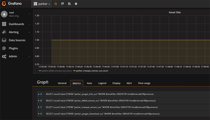 parker就是这样一个项目(项目地址:https://github.com/LiuRoy/parker),它采用celery框架定时爬取用户视频列表,将最新发布的视频通过you-get异步下载,可以很方便地实现分布式部署。因为各个网站的页面布局和接口更新比较频繁,为了保证程序的高可用,特意增加了Statsd监控,方便及时发现出错。