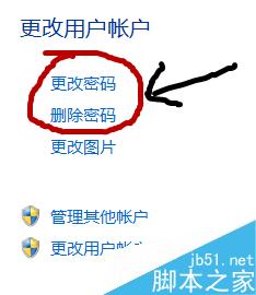 2、密码删除和修改的方法也是相同的,按照上述进入后选择--“更改密码”或者“删除密码”,按照操作删除修改即可