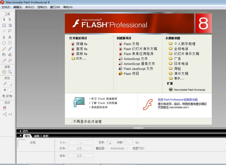 1、打开FLASH8软件,点击“创建新项目”下的FLASH 文档。