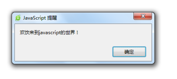 alert("欢饮来到javascript的世界!");//弹出信息提示框