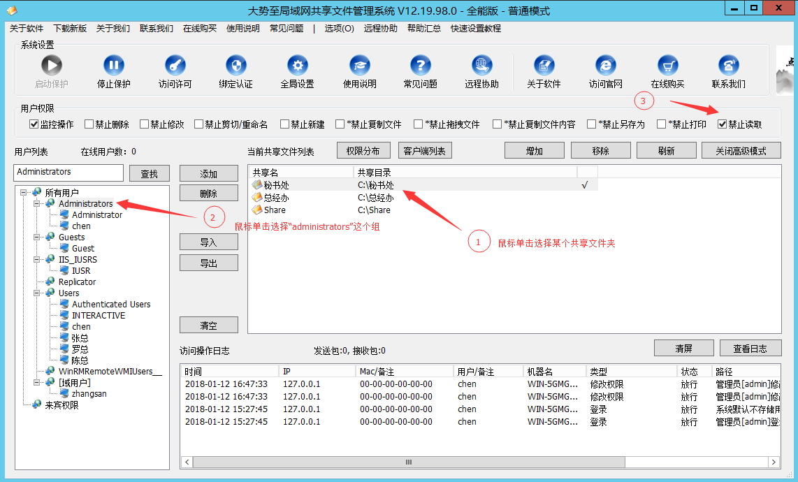 对于服务器共享文件夹只给特定用户访问的设置,除了使用上面的操作系统设置方法,还可以借助于一些共享文件夹权限设置软件、共享文件夹监控软件来实现。